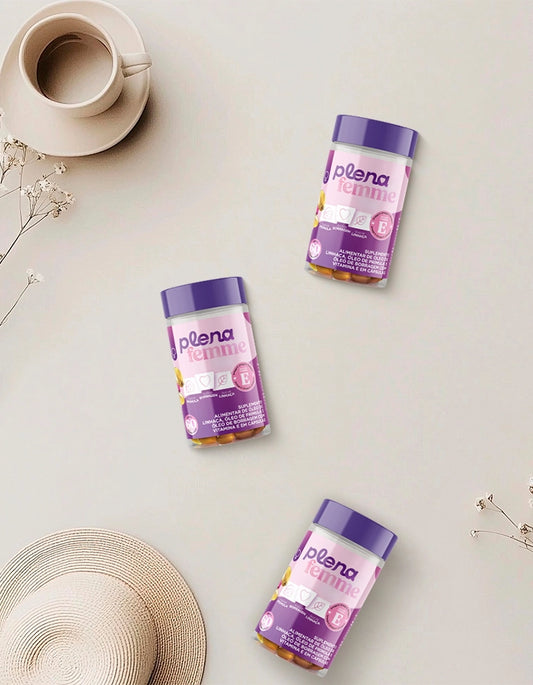 Plena Femme é um suplemento alimentar natural, formulado com óleos vegetais de alta qualidade e vitamina E. Foi desenvolvido para complementar a alimentação e promover o bem-estar feminino em todas as fases da vida, auxiliando na nutrição e saúde da mulher.
